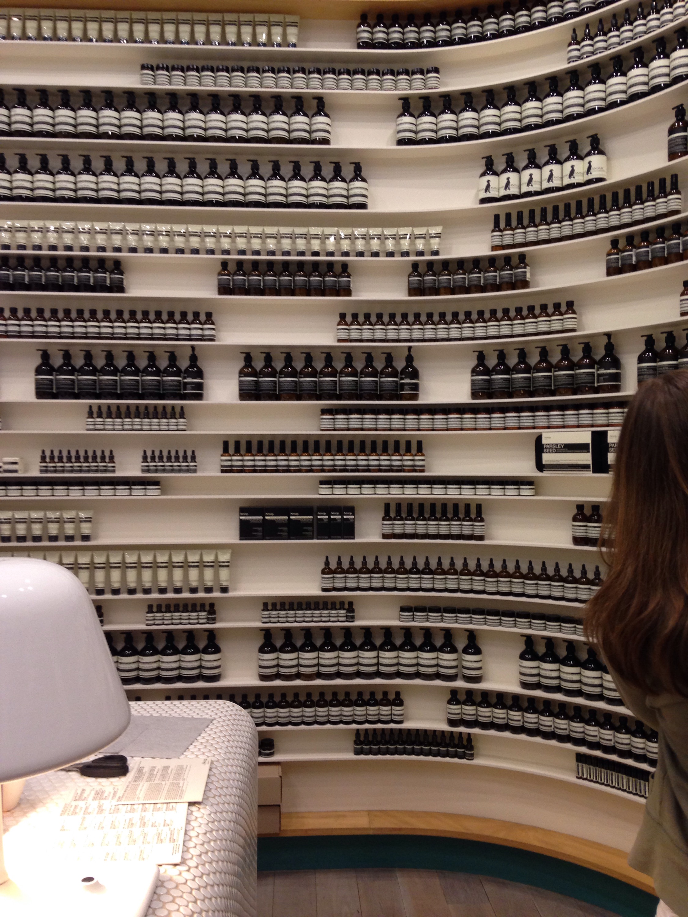 I thought this shop was selling Grown Alchemist products (http://www.grownalchemist.com), but no! This was Aesop! Almost as awesome but not organic! They sell beauty products in delightfully simple packaging, row after row of brown glass bottles with sweet smelling potions. Check them out at Aesop.com their website is stylish and makes me want to shop.