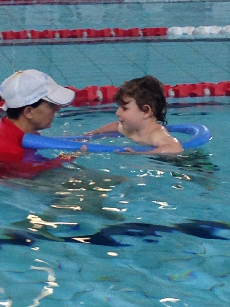 Monty had his second swimming lesson this week! After much whingeing and screaming, “I dont like the black lady, I don’t like the black lady” (referring to the colour of the teachers hat last week ) over and over again, I managed to bribe him with a new digger and he got into the pool! I am pretty sure everyone in Fitness First thinks he is a massive racist! I didn’t have time to explain!
