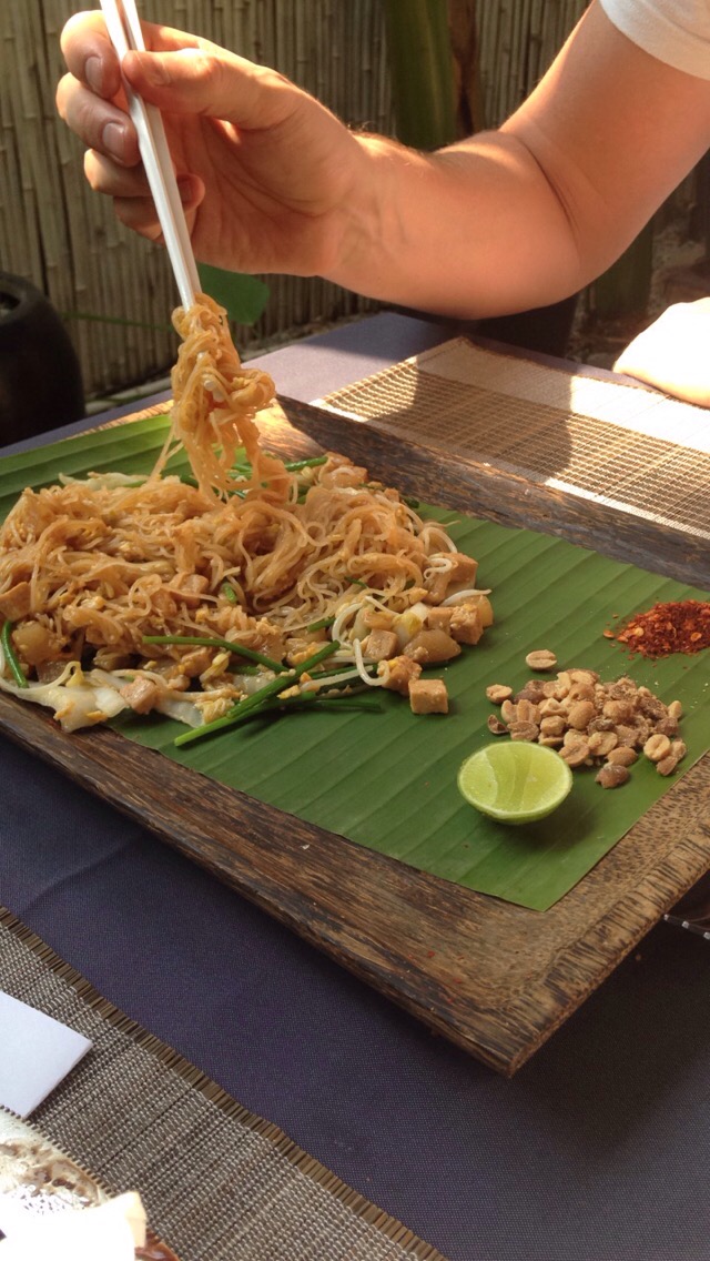 Monty spent about ten minutes of the journey yelling “bleugh I’m gonna be sick” and “muuuuuum my nose is bleedin'”, but nothing was distracting me from this beautiful place. It takes about twenty minutes to get to our hotel (Mulberry Boutique Hotel ), which was like an oasis, a beautiful gem up a tiny alley way, hidden from the hustle and bustle of central Siem Reap. It was only 8am when we arrived, we obviously looked exhausted, as the beautiful lady on reception showed us straight to breakfast. Ahhhh coco pops! Anything to fill their mouths right now!! Tim and I went straight for the pad Thai, no regrets at all. Just look at it.