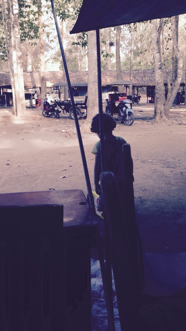 There was a “museum” which was just 2 rooms. Room 1 was filled with terrifying stuffed animals; tigers, hog badgers, lizards, all with odd facial expressions and a little bit scruffy looking. Room 2 was even more creepy; Cambodian wax works of people through the ages whose eyes followed you as you walked. This made Poppy cry, trip up and then have a sweaty melt down. We took the children outside to calm down and were confronted by a big chubby man running towards us, arm stretched out snapping photos randomly. We later found these photos of our shocked faces, (Poppy rather snotty and still snivelling) on little plates for us to purchase. I blatantly wanted one, Tim put his foot down .